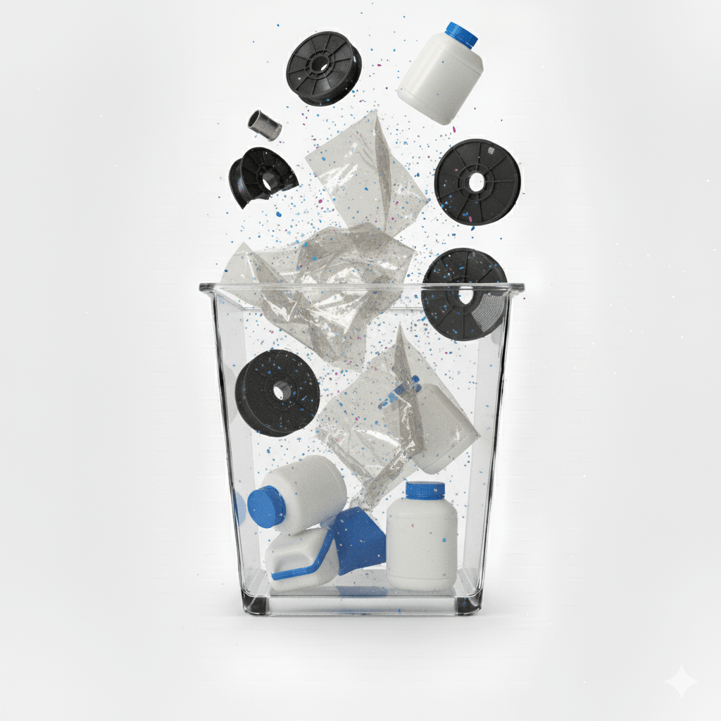 However as “post-consumer waste” (the stuff individuals throw into a recycling bin), it is generally not economically feasible to recycle. It is mixed together with other types of plastic, it is in very small quantities, and it is often contaminated with food waste. All this makes it difficult to process.
